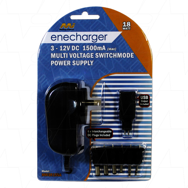 | 描述 | ENECHARGER 18W电源100-240VAC输入输出3V,4.5V,5V,6V,7.5V,9V,9V或12V DC,在1.5 AMP | |||