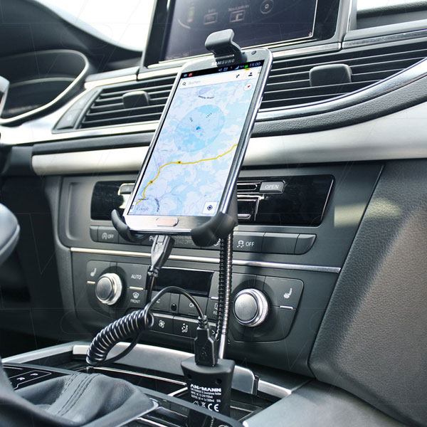 Ansmann智能手机汽车座大型智能手机的USB充电器。 通用Ansmann汽车持有者保持移动电子设备同时开车时很容易拿到,指控他们。持有人只是插入打火机和持有公司即使在崎岖不平的道路,当驱动轮弯曲或在发生制动操作。 由于持有人可调高度适合各种智能手机、手机、GPS系统或MP3播放器。device-friendly橡胶涂层使他们公司和安全没有抓他们。 稳定的鹅颈式和360°旋转球窝接头允许个体调整横向或纵向模式,保持设备总是完美的位置。此外,Ansmann持有人特性一个额外的USB端口允许收取不同的设备与电缆包括在内。 领导的一个蓝色表示如果充电器准备运行。 规格:
