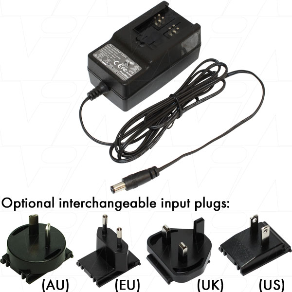 | 描述 | 12.6VDC 0.95A壁挂式电池充电器,带有2.1mm直流输出。可互换的交流插头。 | ||