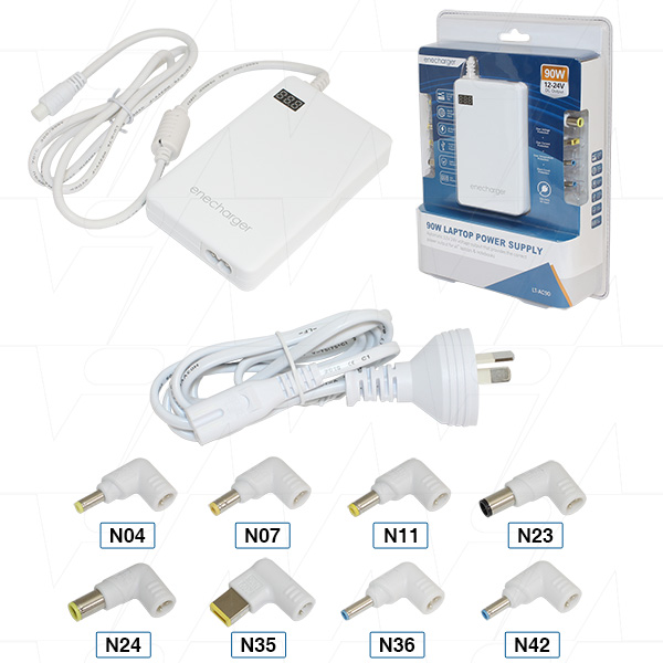 ENECHARGER 90W笔记本电脑电源:100-240V输入,12-24V输出,并具有额外的USB-A输出。 特征: