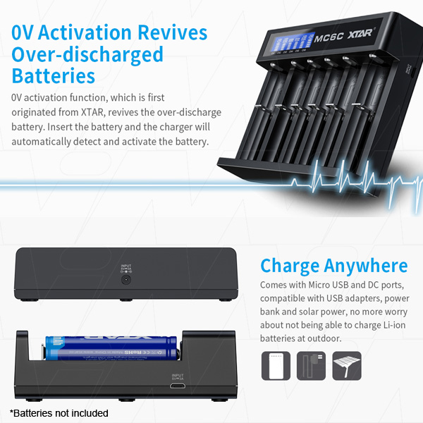 | 描述 | XTAR MC6C全兼容6槽LCD智能锂离子电池充电器 | |||
