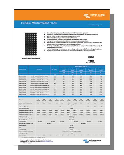 | 描述 | 蓝光VICTRON 12V 30W单晶太阳能电池板4A SPM040301200 | ||||||
