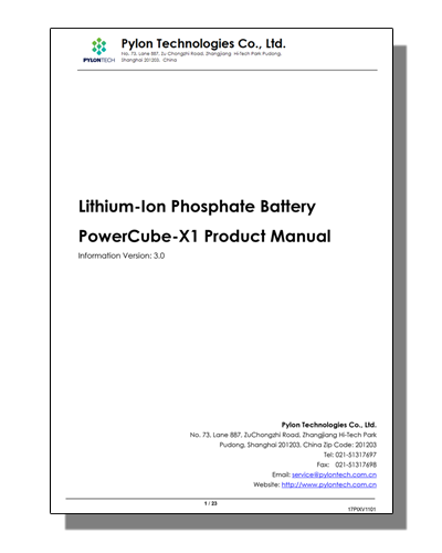 PowerCube X1 240V 12KWH带有SC0500-100S BMS的高压托管电池系统 PowerCube-X1是一种基于磷酸锂电池的高压电池存储系统,是Pylontech开发和生产的新的储能产品之一。它可用于为各种类型的设备和系统提供可靠的功率。PowerCube-X1特别适合需要高功率和长期寿命的应用,在有限的安装空间中 PowerCube-X1具有2级BMS(电池管理系统),可以管理和监视电池信息,包括电压,电流和温度。而且,BMS可以平衡电池充电和排放以延长周期寿命。可以并行连接多个电池,并并联扩大容量和功率,以实现更大的容量和更长的支持持续时间要求。 PowerCube ESS的功能和好处: